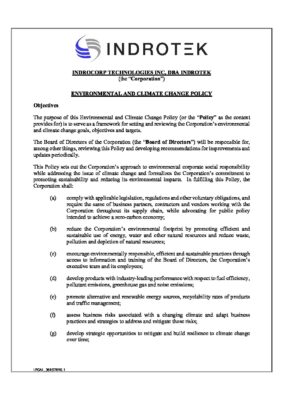 INDROCORP TECHNOLOGIES INC. DBA Indrotek._(1015982-281321)_Environmental and Climate Change Policy (September 2021)
