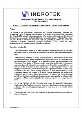 INDROCORP TECHNOLOGIES INC. DBA Indrotek._(1015982-281321)_Nominating and Corporate Governance Committee (September 2021)